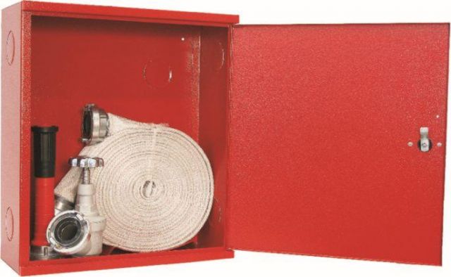 Nástěnný hydrantový systém se zploštitelnou hadicí délky 20 m.